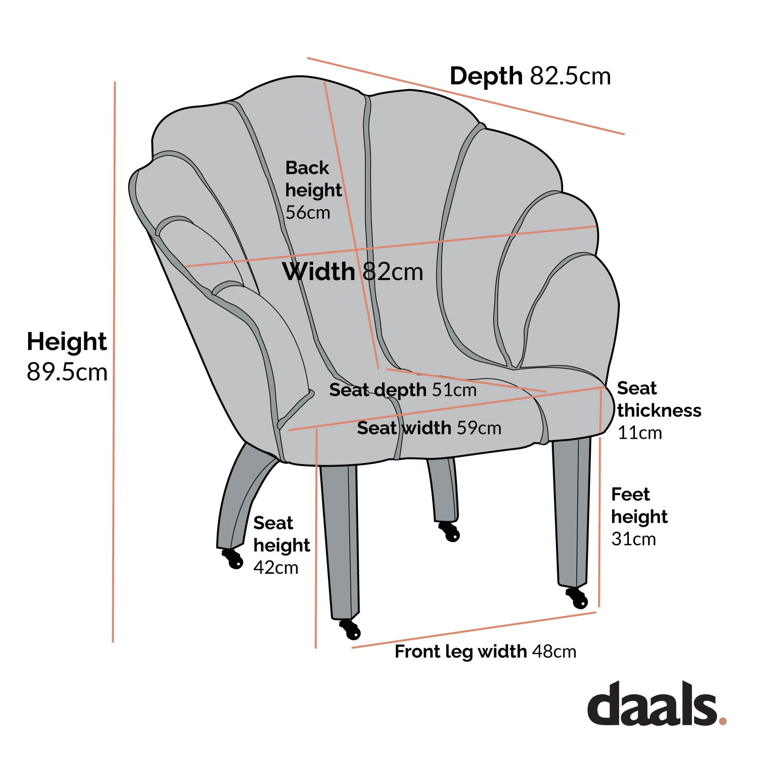- Overall size: W 82 x D 82.5 x H 89.5 cm