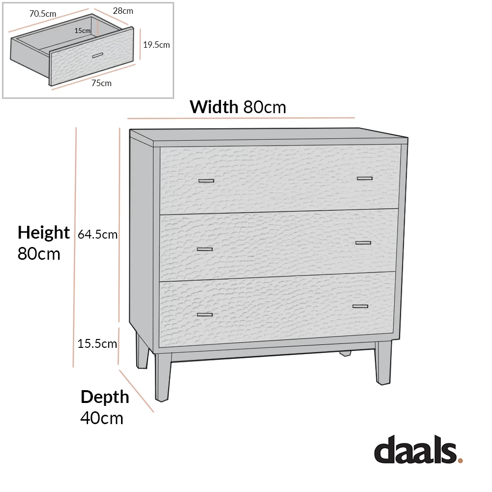 - Our Bianca chest of 3 drawers offers elegant storage solution for the bedroom.