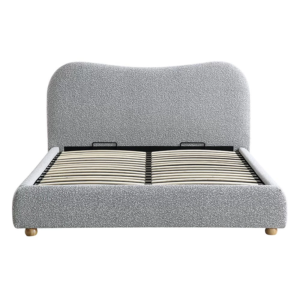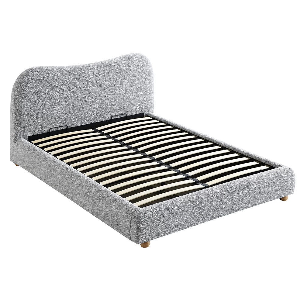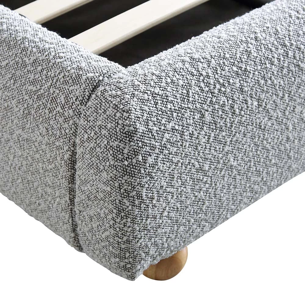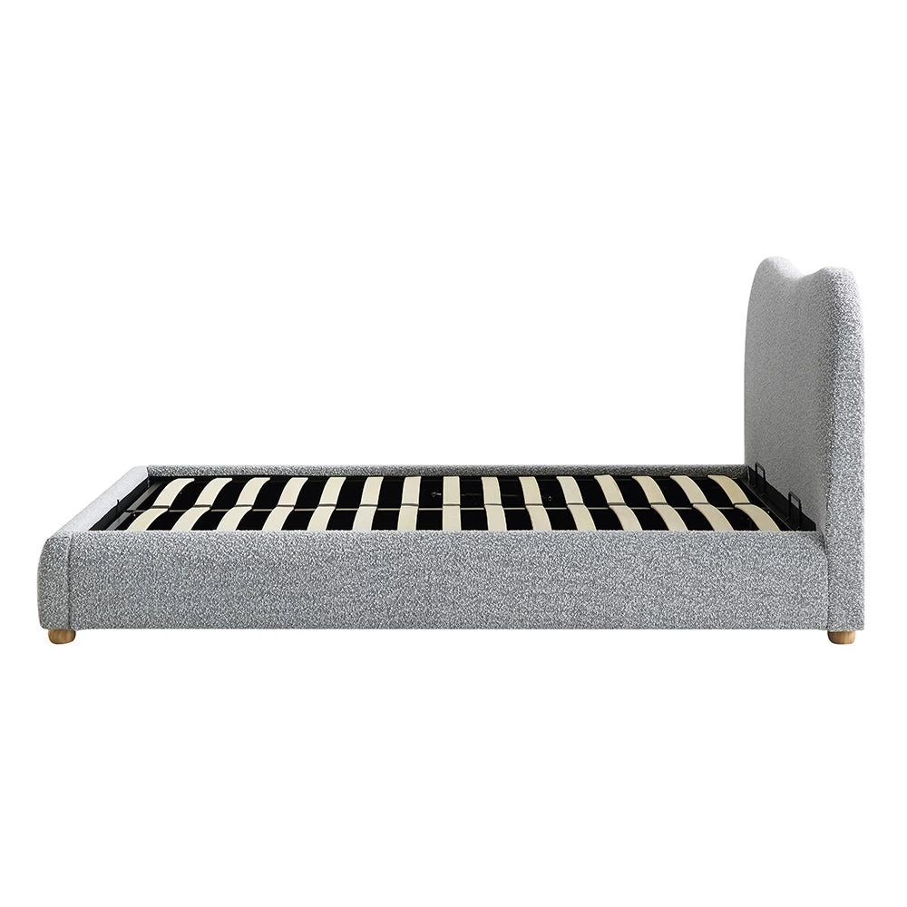 - Our Egerie bed features inviting curved silhouette, upholstered with sumptuous mist grey colour boucle fabric for a chic, cosy place to relax.