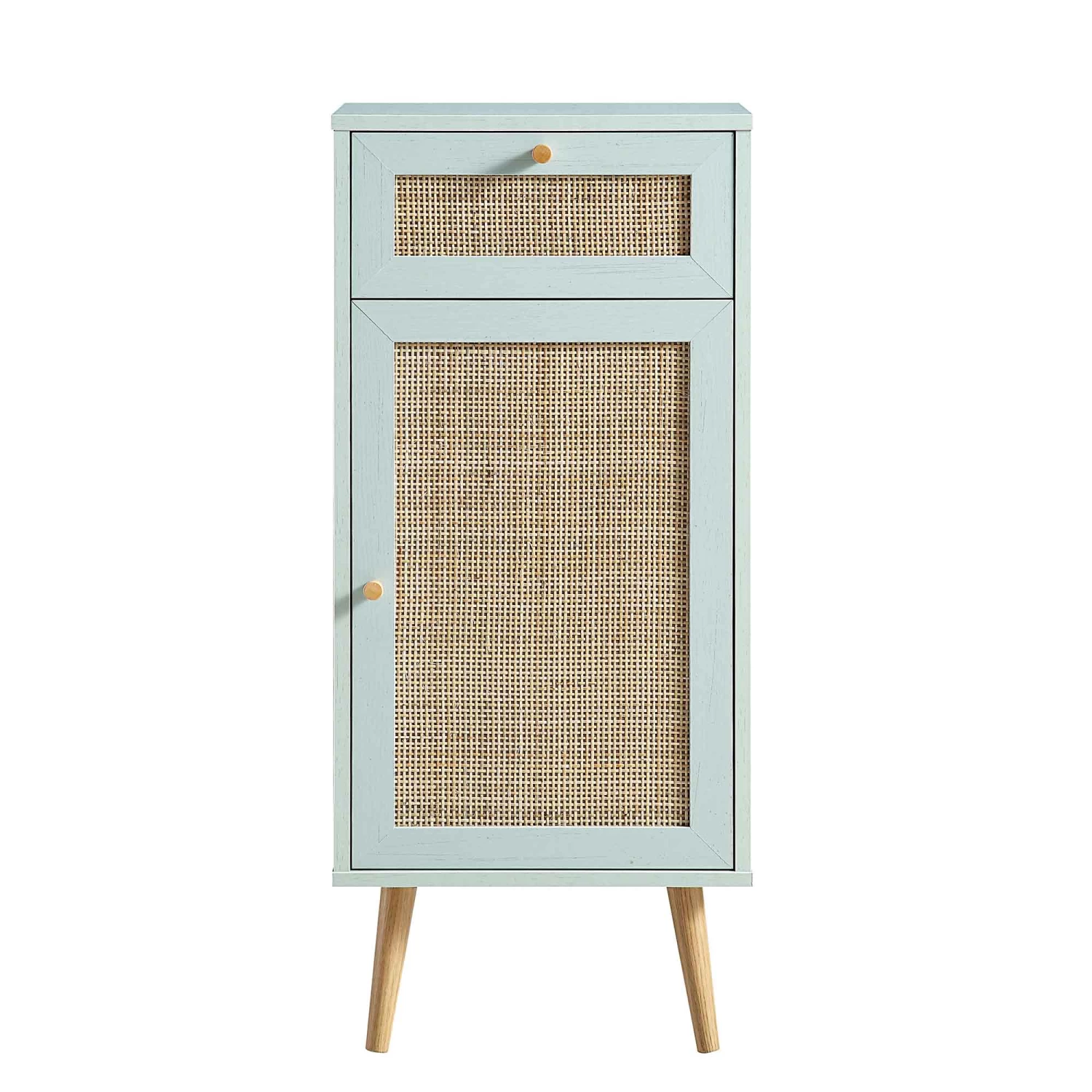 - Our Frances Woven Rattan 1-Door Cabinet is designed with a beautiful natural woven rattan door as well as a drawer, giving ample amounts of discreet storage