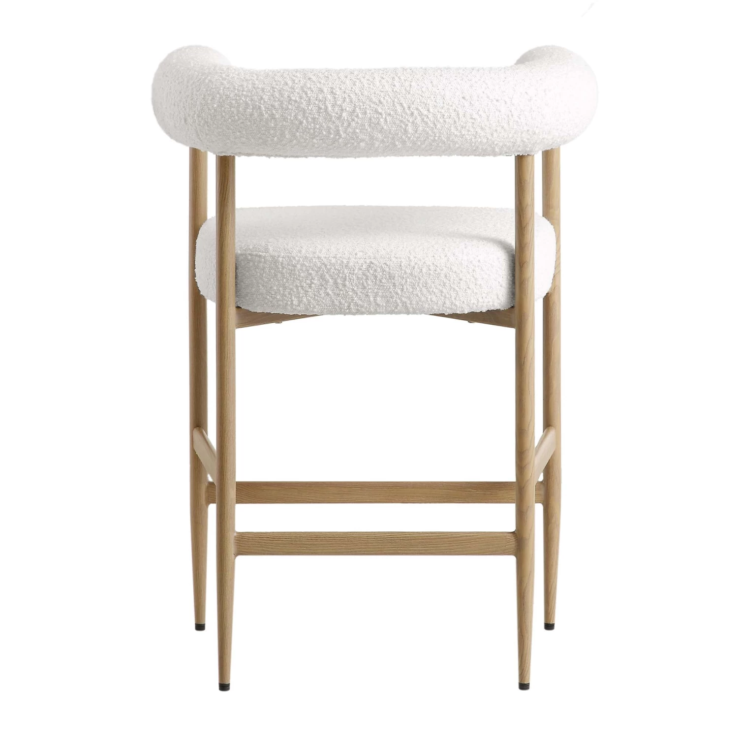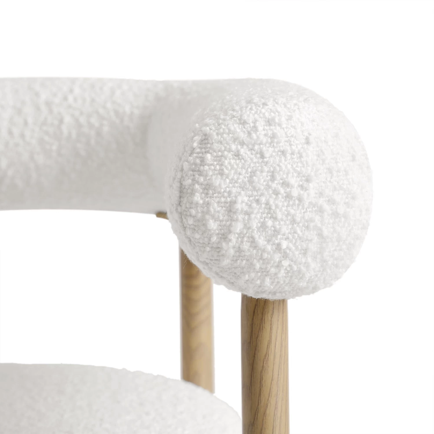 - Well-cushioned seat and luxe boucle upholstery in white colour is paired with natural wood effect legs for a sophisticated look.