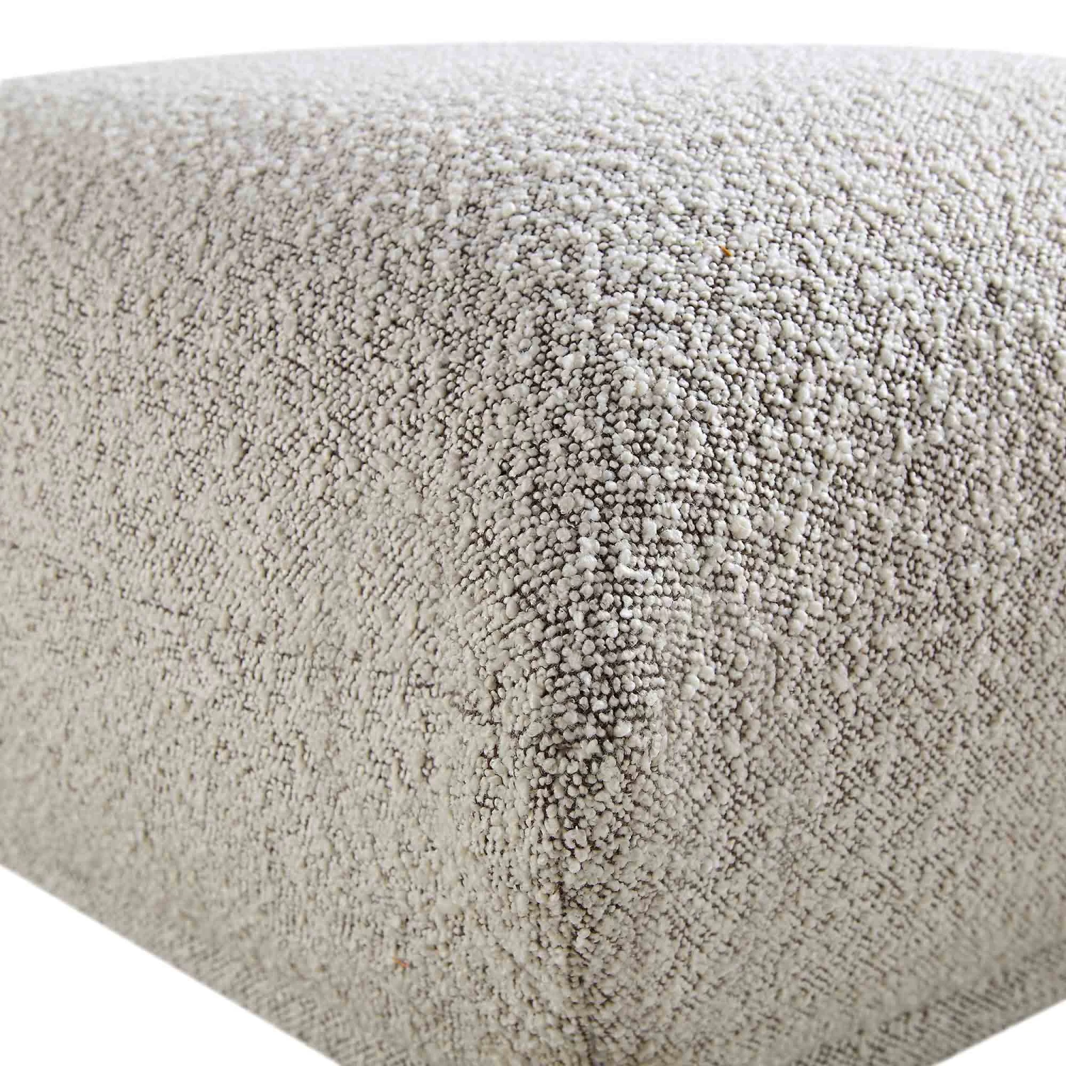 - Upholstered with chic mist grey boucle fabric for a contemporary look.