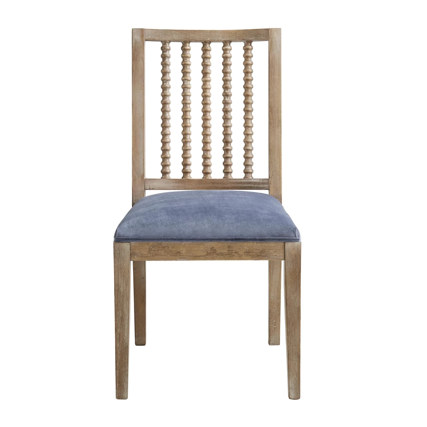 - The chairs have padded seat upholstered with elegant blue grey velvet touch fabric.