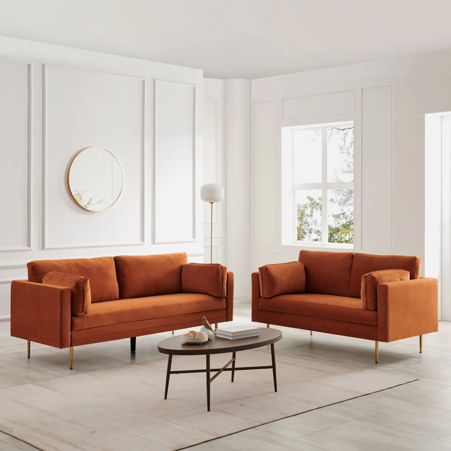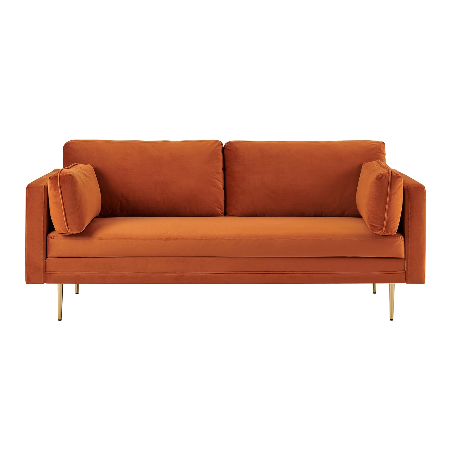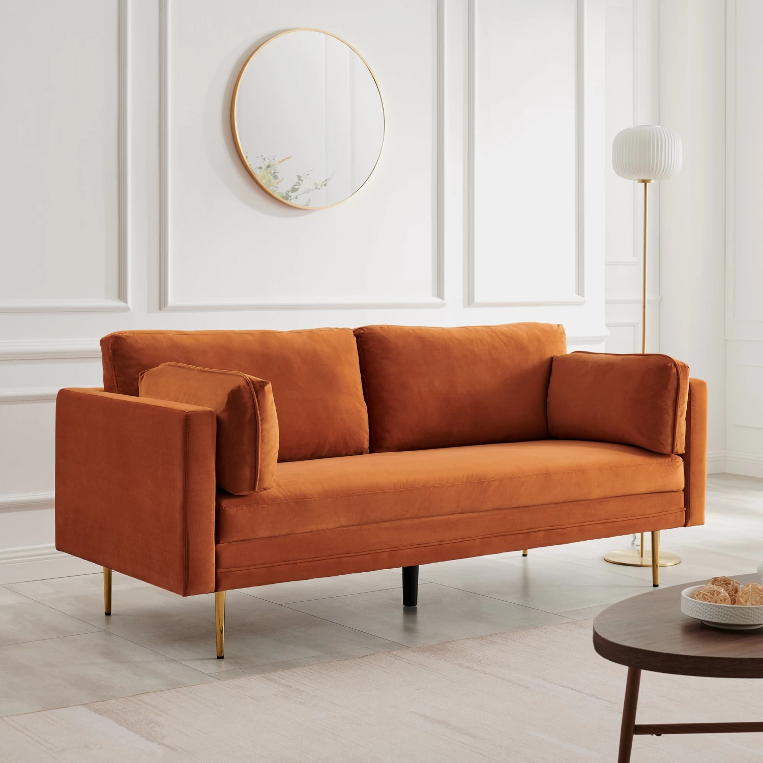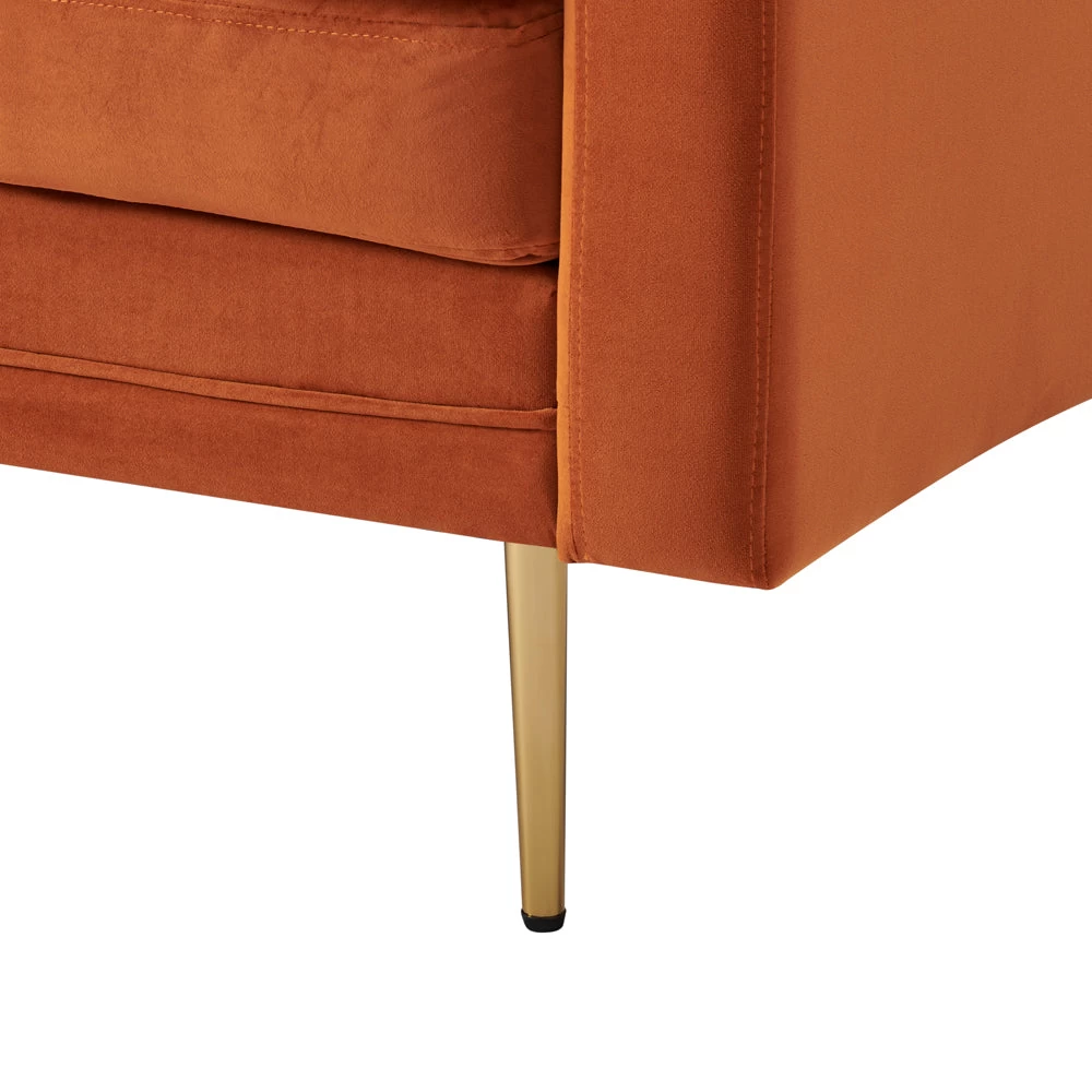 - Add a pop of rich colour to your living space with our Pelham velvet sofa. The stylish profile accented by neatly tailored cushion piping and tapered gold colour legs brings contemporary look to your home.