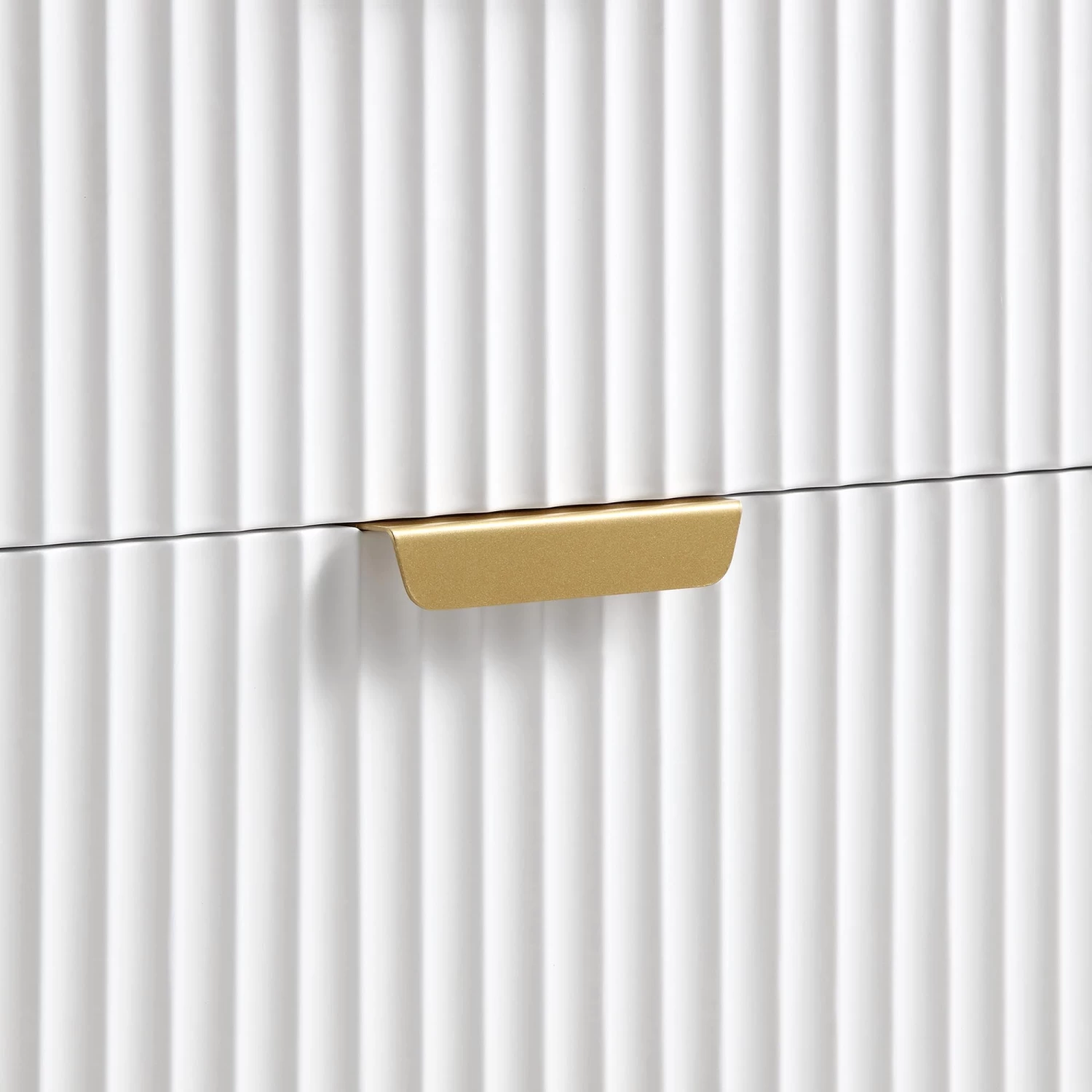 - Ridged door surface finished in matte white paint, paired with gold handles and legs give a striking stylish look.