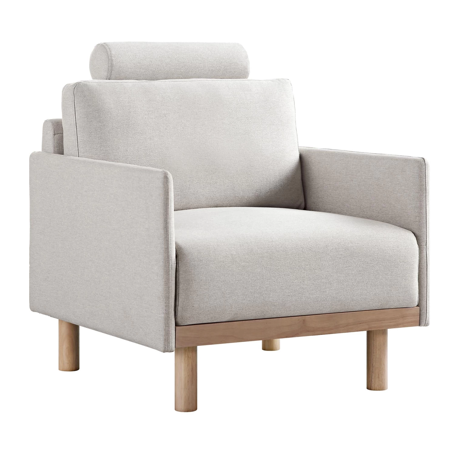 - Upholstered in soft, wool like fabric in oatmeal colour that suits any home decor